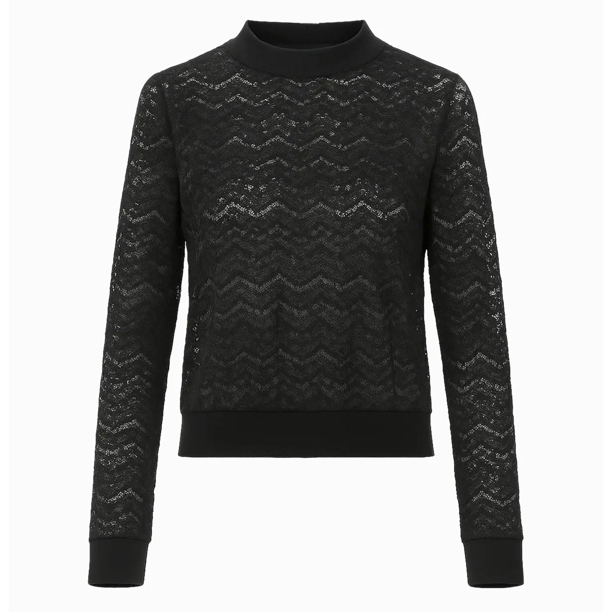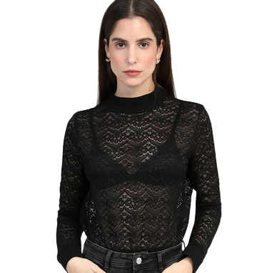 This stretch lace top is perfect on its own or as a layering style! Featuring a round neck with jersey neckline, cuffs and hem. Made from 92% Polyester 8% Elastane. Machine wash@ 30C