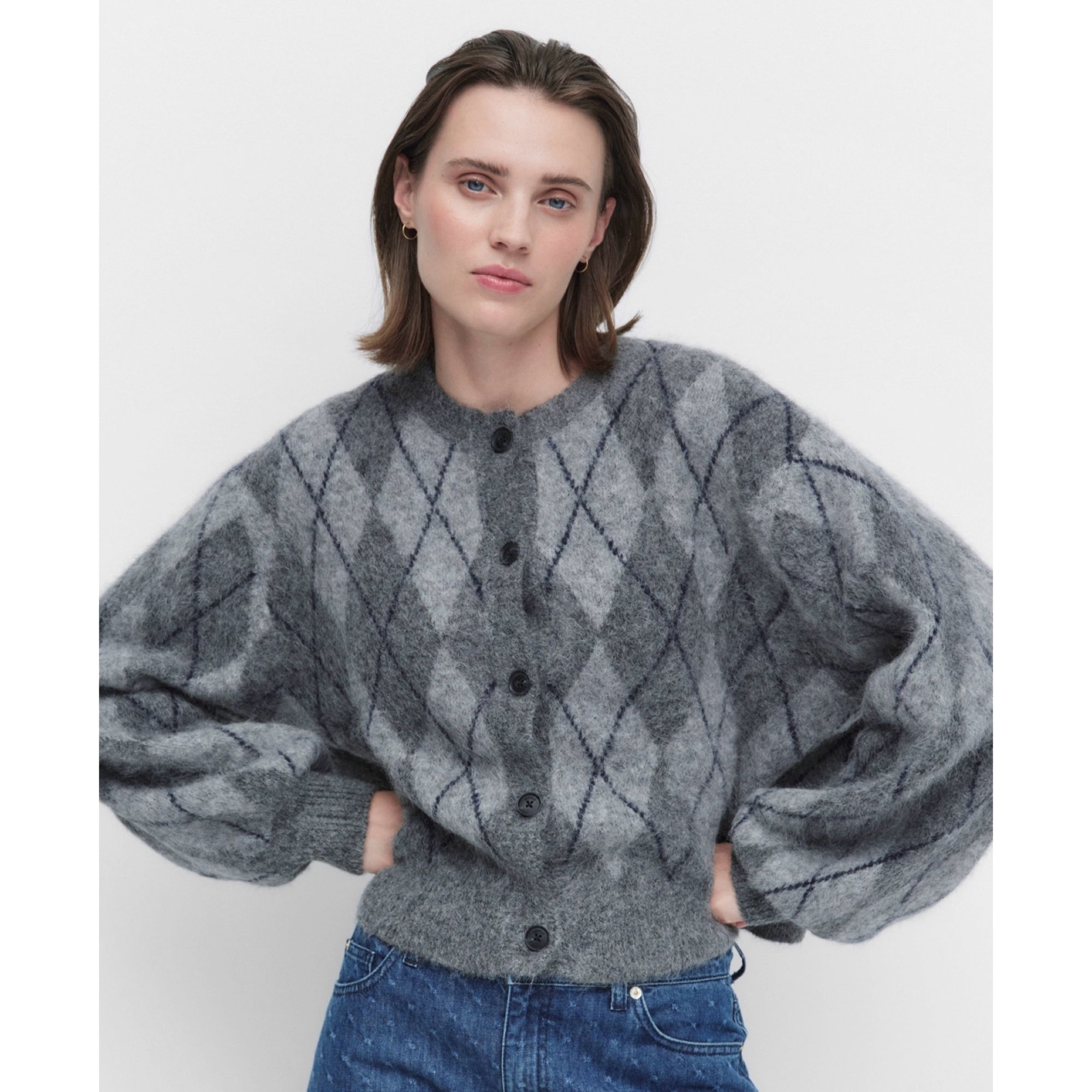 We love this alpaca wool mix cardigan. This cool style features a round neck, buttoned front and full length balloon sleeves with ribbed cuffs. Made from 70% Alpaca, 24% Polymide, 1% Elastane. Handwash or Dryclean