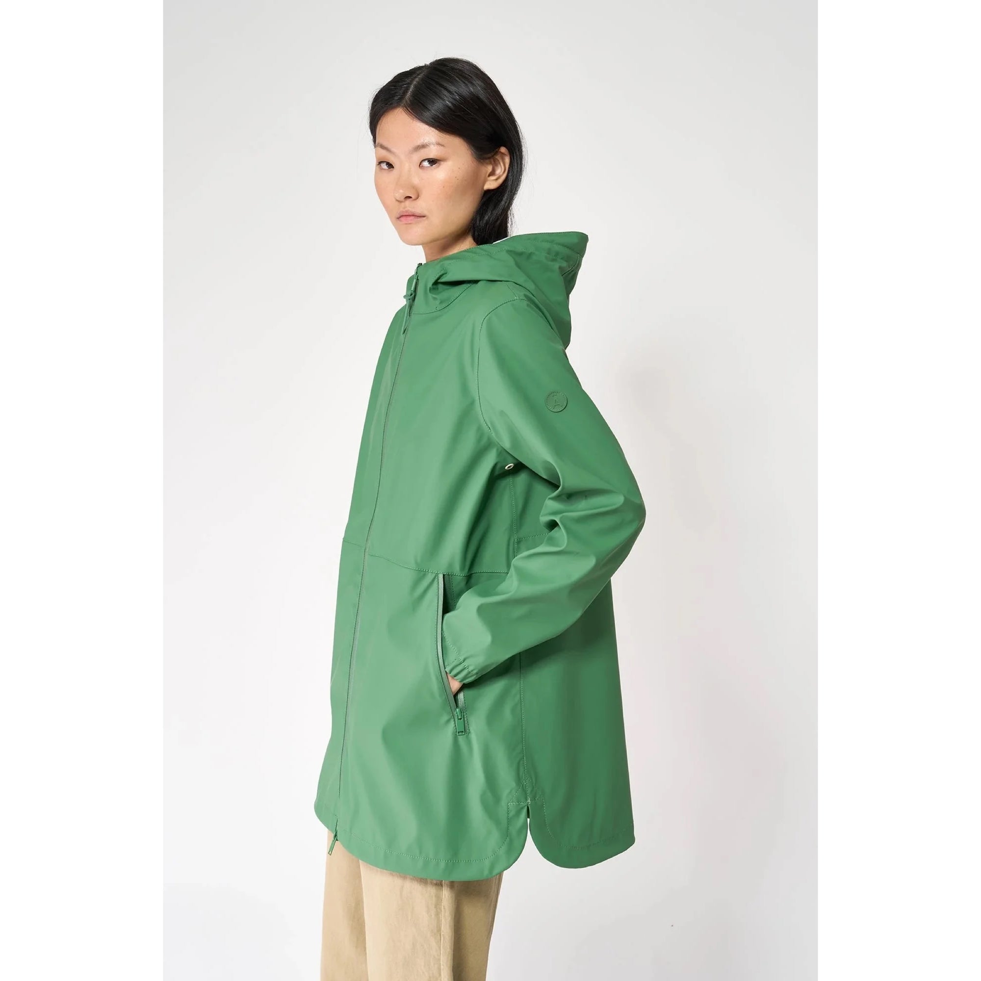 The Brouillard waterproof jacket is crafted from our signature PU fabric. Fully waterproof, it features taped seams for superior protection. Design details include rounded side vents, tonal waterproof zippers, and an elegant A-line silhouette. A must-have staple in your wardrobe. Fits true to size. Also available in Stone Grey