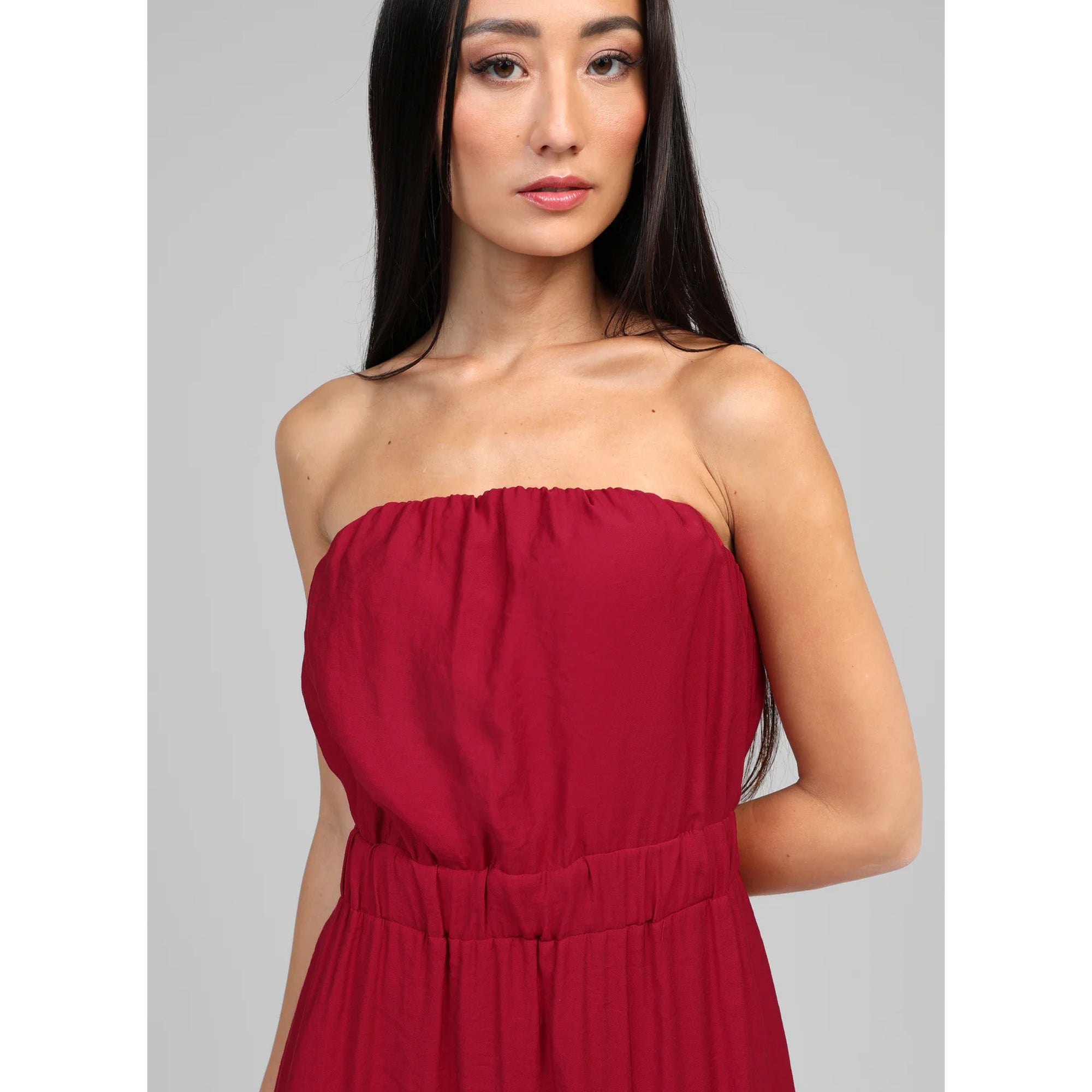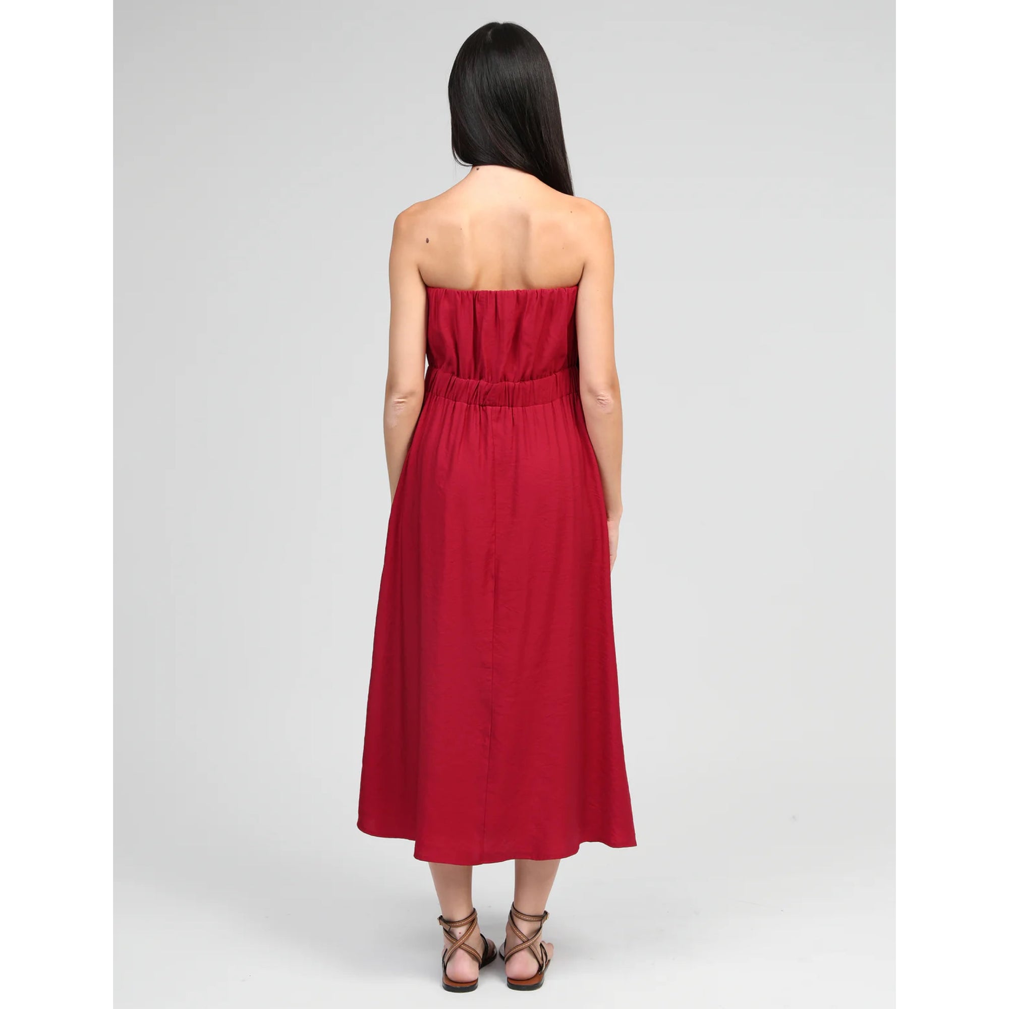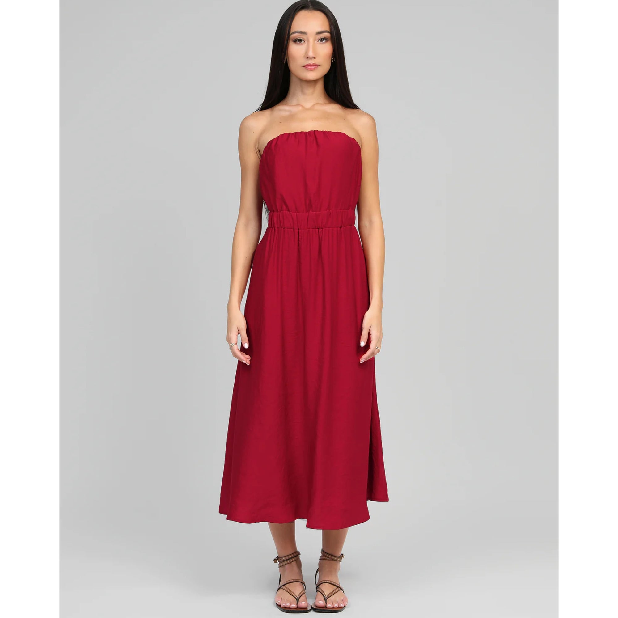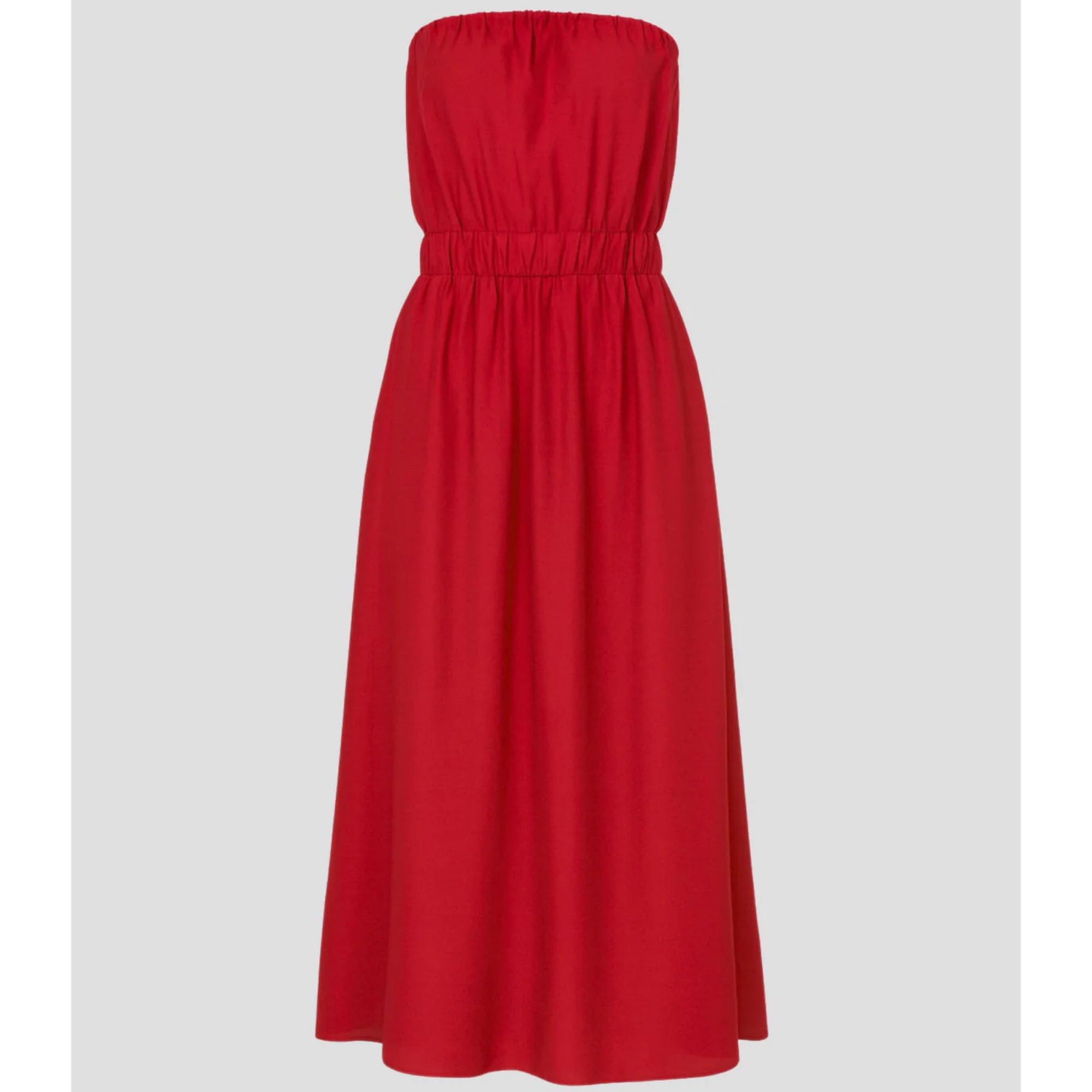 This gorgeous dress from An’ge is so easy to wear. This strapless midi length style features pockets and a rushing at the waist which gives a lovely fit.  Perfect for every occasion. Made from 100% viscose. Machine wash@ 30C. Also available in Carbon